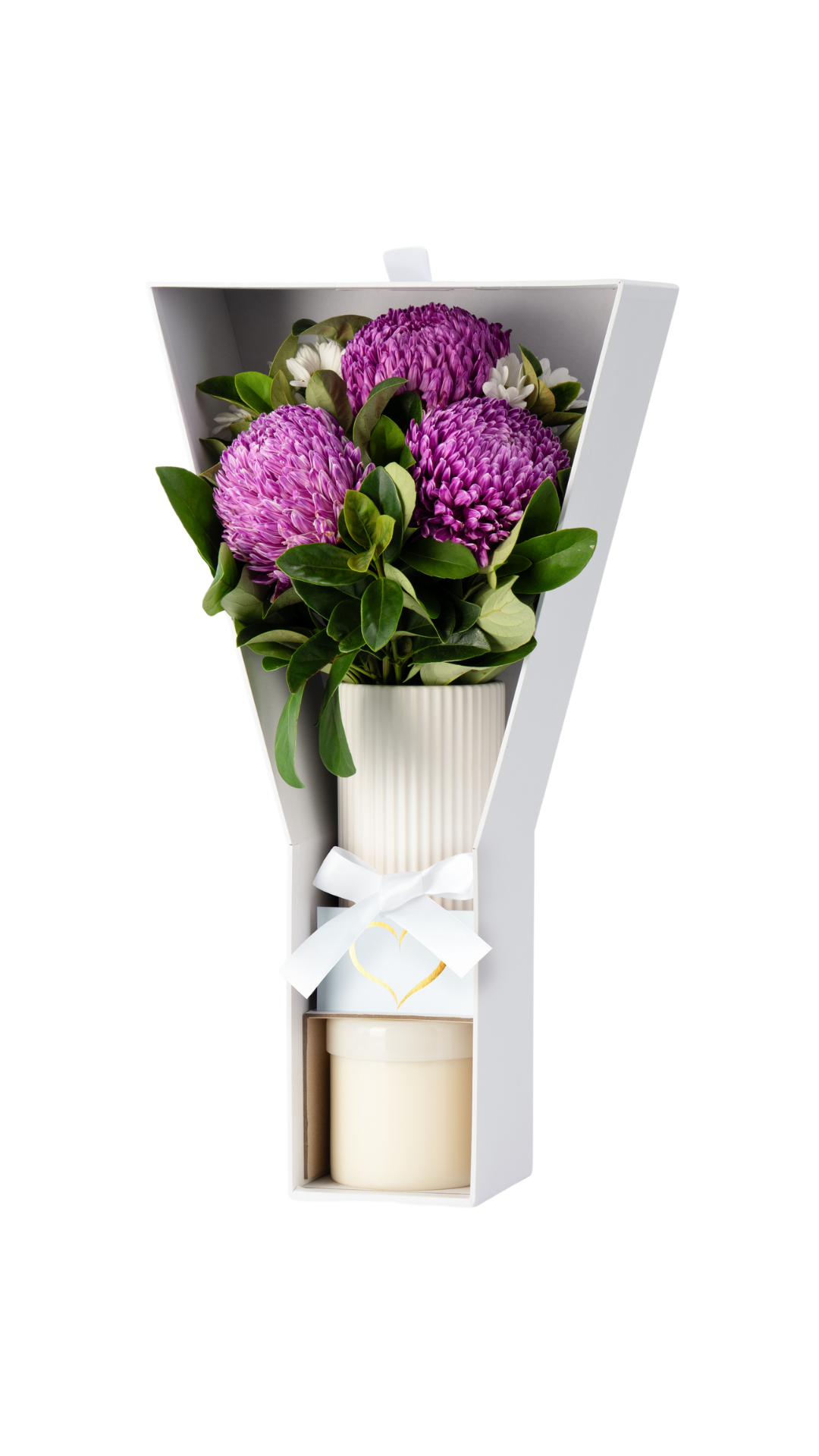 Our handcrafted boxes are available in five elegant colors, finished with gold foiling, each thoughtfully designed to complement our bouquets and vessels.